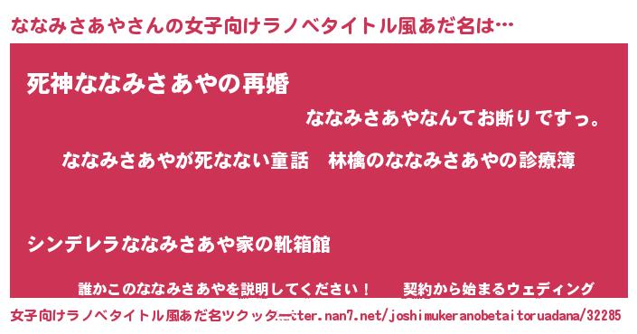 | 意味不明あだ名 | 『住所不定無職ななみさあや(65歳)』 |
