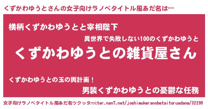 | 男性向けラノベタイトル風あだ名 | 『やはりくずかわゆうとの青春ラブコメはまちがっている 』 |
