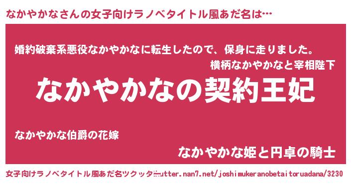 | 胡散臭い通販商品みたいなあだ名 | 『来世でも幸せになれる招き猫…その名も「なかやかな」』 |