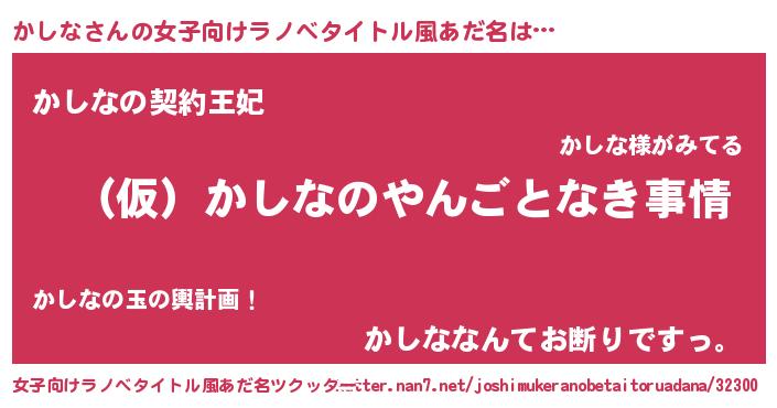 男性向けラノベタイトル風あだ名 | 『かしなの憂鬱』『魔法科高校のかしな』 |