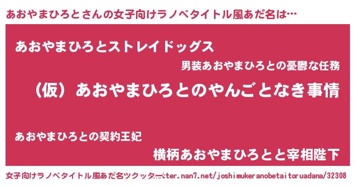 | 男性向けラノベタイトル風あだ名 | 『あおやまひろとの憂鬱』 |