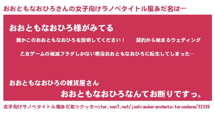 | 胡散臭い通販商品みたいなあだ名 | 『世界中を虜にした100年もののヴィンテージワイン…その名も「おおともなおひろ」』 |