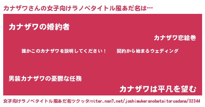 | ファンタジー風あだ名 | 『カナフェル』『エターナルカナザワー』 |