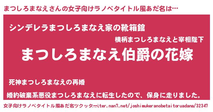 | 男性向けラノベタイトル風あだ名 | 『やはりまつしろまなえの青春ラブコメはまちがっている 』 |