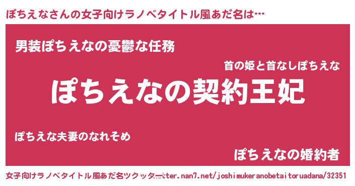 | 男性向けラノベタイトル風あだ名 | 『ぽちえなという概念が存在しない退屈な世界 』 |