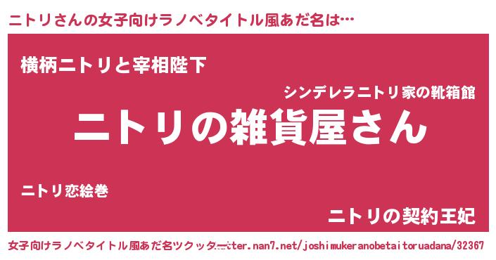 | 男性向けラノベタイトル風あだ名 | 『やはりニトリの青春ラブコメはまちがっている 』 |