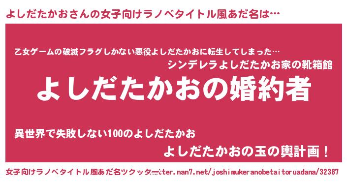 | ファンタジー風あだ名 | 『エターナルヨシダタカオー』 |