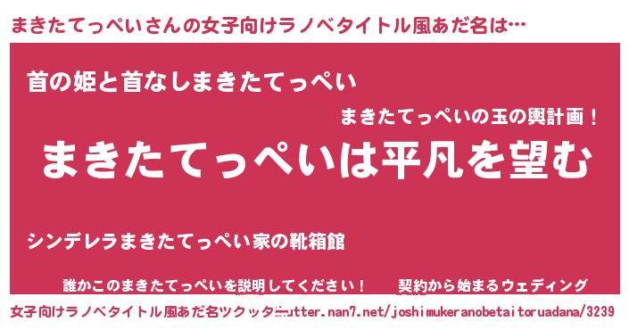| 男性向けラノベタイトル風あだ名 | 『ダンジョンにまきたてっぺいを求めるのは間違っているだろうか』 |