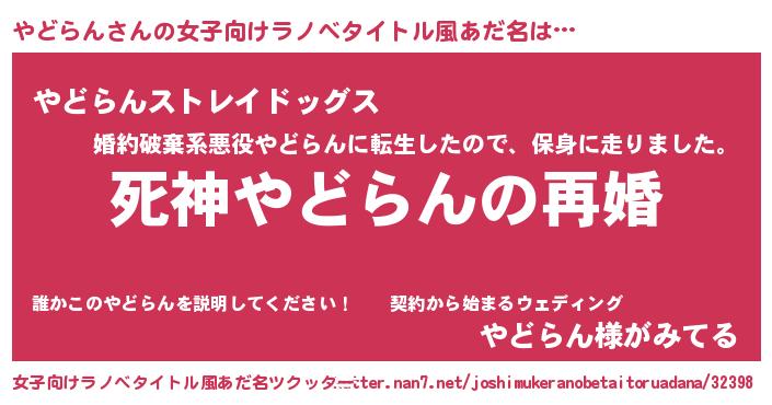 | 男性向けラノベタイトル風あだ名 | 『ノーゲーム・ノーヤドラン』 |