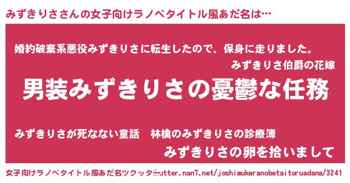 | 男性向けラノベタイトル風あだ名 | 『うちのみずきりさが世界を掌握している!』 |