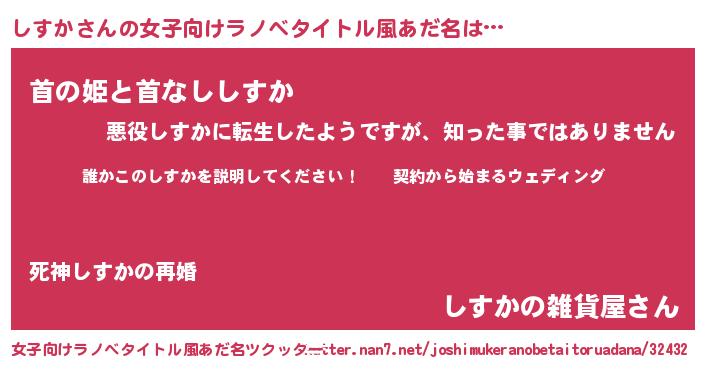 | 胡散臭い通販商品みたいなあだ名 | 『億万長者になれる霊験あらたかなお札…その名も「しすか」』 |