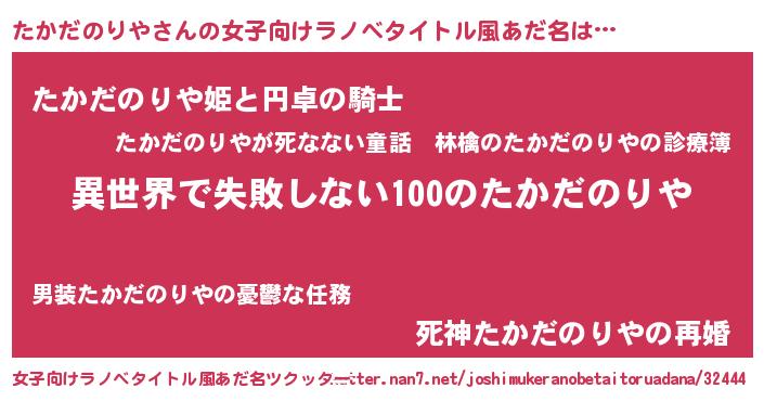| 可愛いあだ名 | 『たかだのりやママ』『たんたん』 |