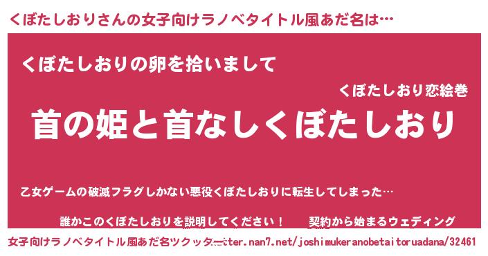 | 男性向けラノベタイトル風あだ名 | 『はたらくくぼたしおりさま!』 |