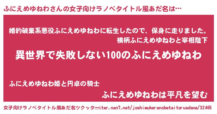 | 男性向けラノベタイトル風あだ名 | 『ふにえめゆねわという概念が存在しない退屈な世界 』 |
