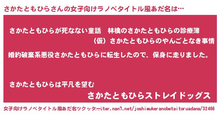 | 男性向けラノベタイトル風あだ名 | 『サカタトモヒラスレイヤー』 |