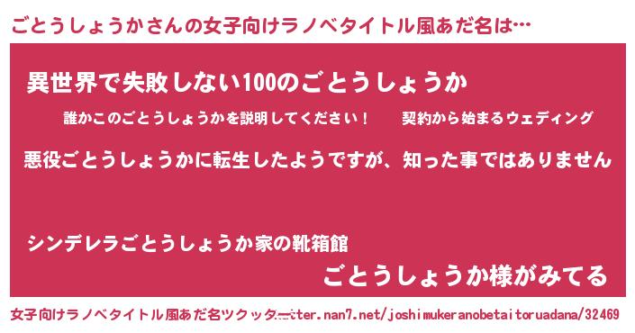 | 男性向けラノベタイトル風あだ名 | 『この素晴らしい世界にごとうしょうかを!』 |