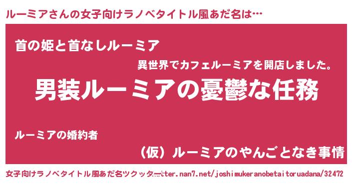 | ヘコむあだ名 | 『ルーっふぃ~』『ルーミア(笑)』 |