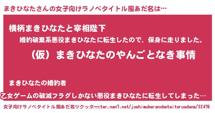 | 男性向けラノベタイトル風あだ名 | 『まきひなたの憂鬱』 |