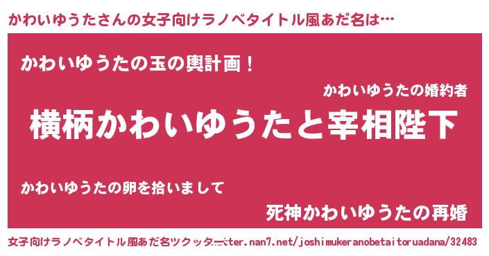 | 男性向けラノベタイトル風あだ名 | 『かわいゆうたに滅ぼされるだけの簡単なお仕事です』 |