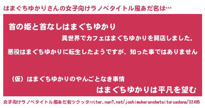| 男性向けラノベタイトル風あだ名 | 『この素晴らしい世界にはまぐちゆかりを!』 |