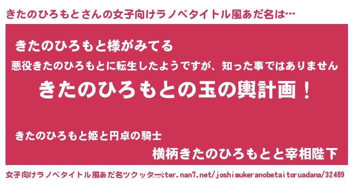 | 男性向けラノベタイトル風あだ名 | 『きたのひろもと~年齢イコール彼女いない歴の魔法使い~』 |