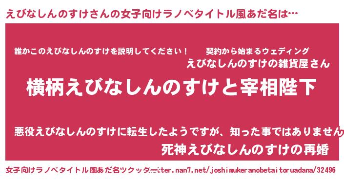 | ヒーロー風カッコイイあだ名 | 『スーパーエビナシンノスケ』 |