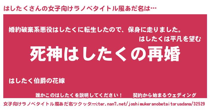 | 男性向けラノベタイトル風あだ名 | 『ノーゲーム・ノーハシタク』 |