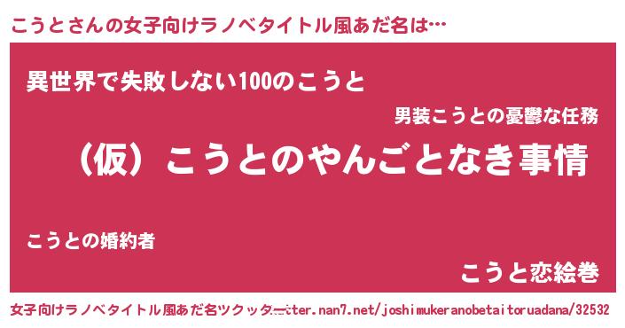 | 男性向けラノベタイトル風あだ名 | 『こうとの憂鬱』 |