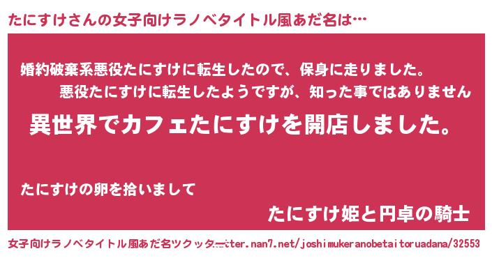 | 男性向けラノベタイトル風あだ名 | 『誰もが恐れるあのたにすけが、ぼくの専属メイドになるようです。』 |