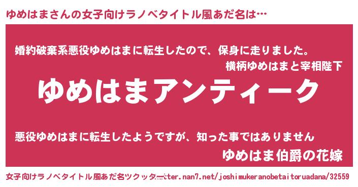 | 男性向けラノベタイトル風あだ名 | 『魔法科高校のゆめはま』 |