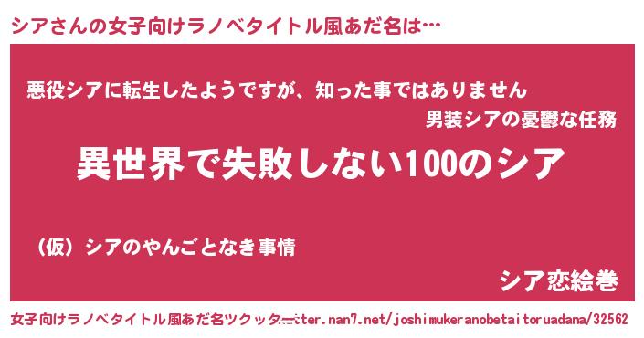 | 意味不明あだ名 | 『永久保存シア』『住所不定無職シア(14歳)』 |
