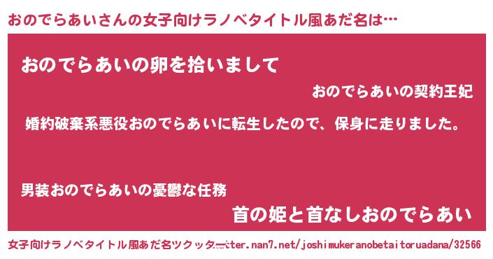 | 男性向けラノベタイトル風あだ名 | 『転生したらおのでらあいだった件』 |