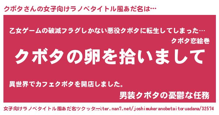 | 男性向けラノベタイトル風あだ名 | 『ダンジョンにクボタを求めるのは間違っているだろうか』 |