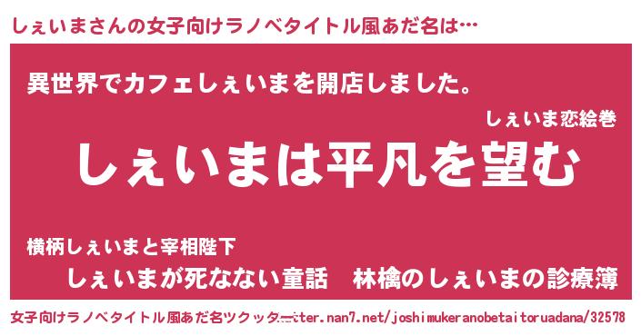 | 胡散臭い通販商品みたいなあだ名 | 『信頼と実績のネックレス…その名も「しぇいま」』 |