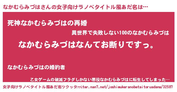 | 男性向けラノベタイトル風あだ名 | 『魔法科高校のなかむらみづは』 |