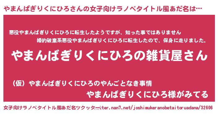 | 欧米人風あだ名 | 『やまんばぎりくにひろクリステル』 |