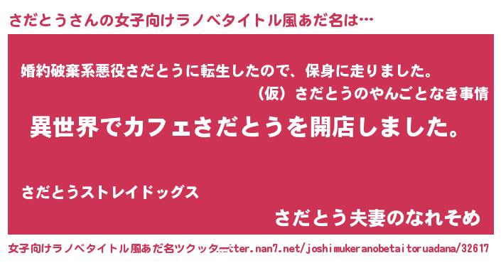 | 意味不明あだ名 | 『永久保存さだとう』『ペロリンさだとう』 |