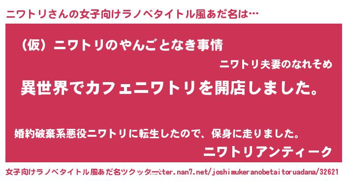 | ヘコむあだ名 | 『ニワトリ(笑)』『ニワふぇ~』 |
