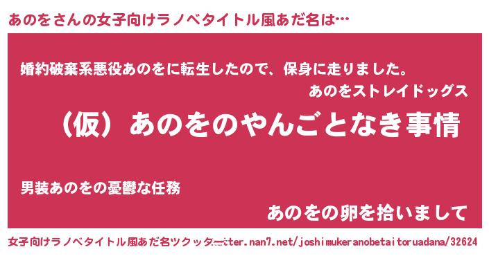 | 胡散臭い通販商品みたいなあだ名 | 『必ず成功する水晶球…その名も「あのを」』 |