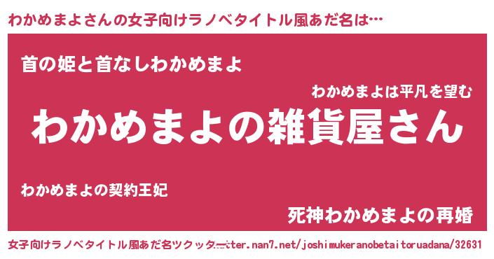 | 男性向けラノベタイトル風あだ名 | 『やはりわかめまよの青春ラブコメはまちがっている 』 |
