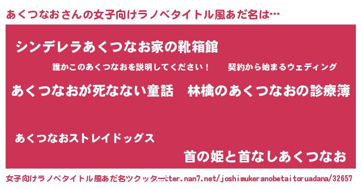 | 胡散臭い通販商品みたいなあだ名 | 『ハリウッド女優が絶賛した世界で10本だけ現存している希少なブランデー…その名も「あくつなお」』 |