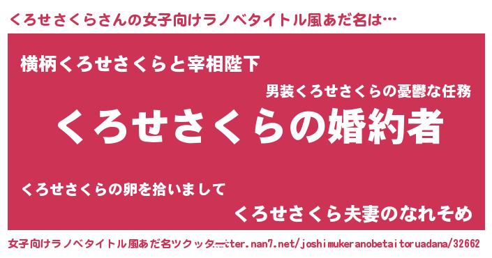 | 胡散臭い通販商品みたいなあだ名 | 『運命の人と巡り会える高級そうな壺…その名も「くろせさくら」』 |