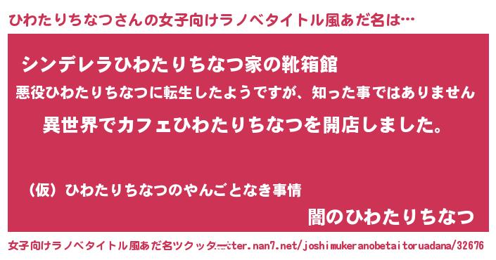 | 男性向けラノベタイトル風あだ名 | 『誰もが恐れるあのひわたりちなつが、ぼくの専属メイドになるようです。』 |