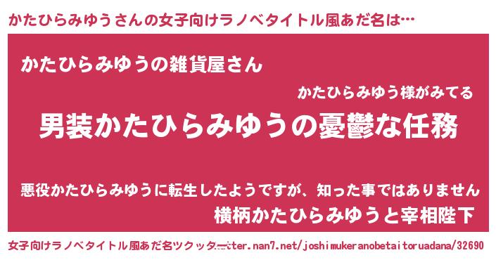 | 男性向けラノベタイトル風あだ名 | 『うちのかたひらみゆうが世界を掌握している!』 |
