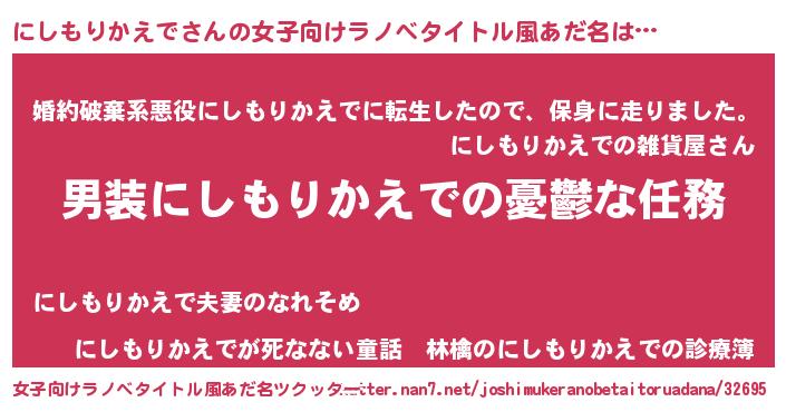 | 胡散臭い通販商品みたいなあだ名 | 『あなたにだけ特別に提供する世界で10本だけ現存している希少なブランデー…その名も「にしもりかえで」』 |