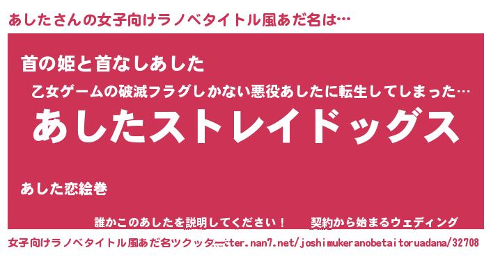 | 男性向けラノベタイトル風あだ名 | 『Re:あしたから始める異世界生活』 |