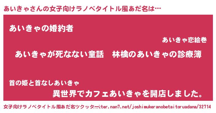 | 男性向けラノベタイトル風あだ名 | 『魔弾の王とあいきゃ』 |