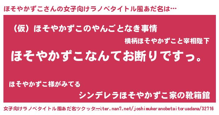 | 肩書あだ名 | 『ほそやかずこ閣下』『ほそやかずこ店長』 |