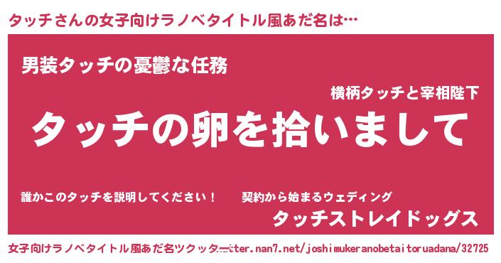 | 意味不明あだ名 | 『とにかく怪しいタッチ』『自称タッチ』 |