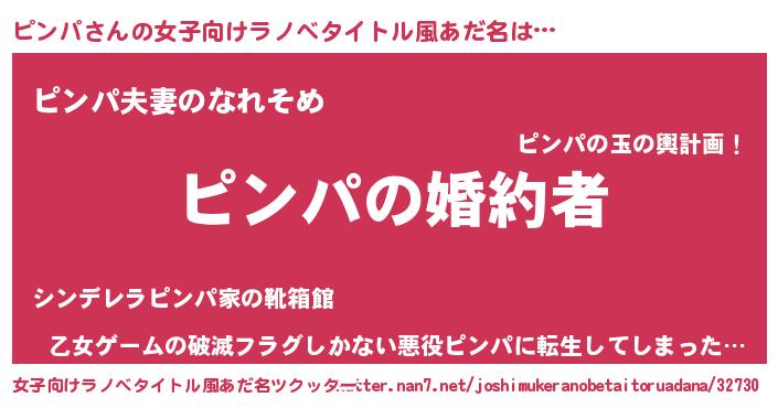 | 男性向けラノベタイトル風あだ名 | 『うちの娘の為ならば、俺はもしかしたらピンパも倒せるかもしれない。』 |